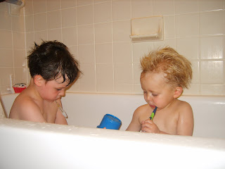 Cal is still very into trains and Thomas, but Michael isn't really (thank goodness). Of course, Cal likes to like whatever Michael likes, so he follows along with just about anything. The new thing in our house is Legos and Batman.